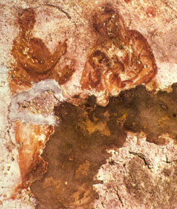 This is the oldest known image of the Virgin Mary (seen apparently nursing the infant Jesus on her lap). It is located in the Catacomb of Priscilla on the Via Salaria in Rome. It is dated circa A.D. 150.